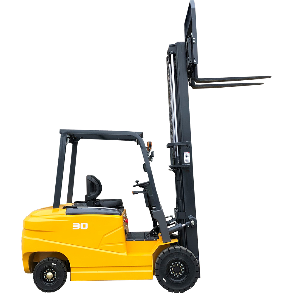 This high-performance Electric Forklift offers a 3000 kg rated load with a 4500 mm lift height via a 3-stage mast, making it suitable for high stacking and versatile indoor/outdoor use. The wide-view mast design improves visibility and safety, while the DC drive motor delivers smooth acceleration, low noise, and zero emissions — perfect for warehouses, manufacturing plants, and food or pharmaceutical facilities.